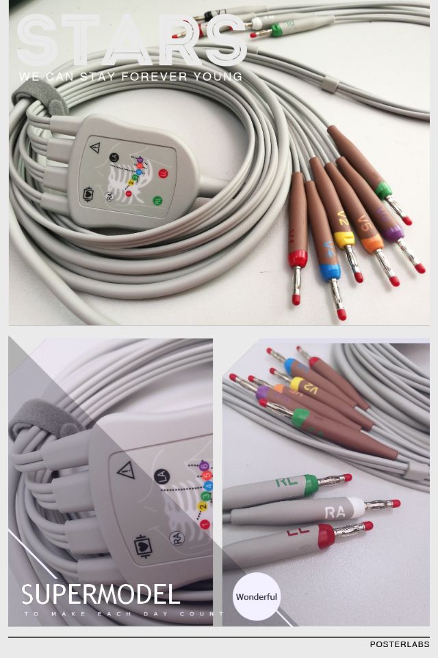 1,优化了终端用户对产品易清洁消毒要求的设计。 2,线材采用双屏蔽KALVER结构,进口TPU材质外被;大大提升产品使用性能. 3,更合理美观的分线盒设计,胸导联与肢导联2+3+3+2并线式防缠绕; 4,电极连接端双色注塑成型,颜色标识清晰分明; 为高端医疗设备企业提供优质的产品与服务,我们时刻准备着~